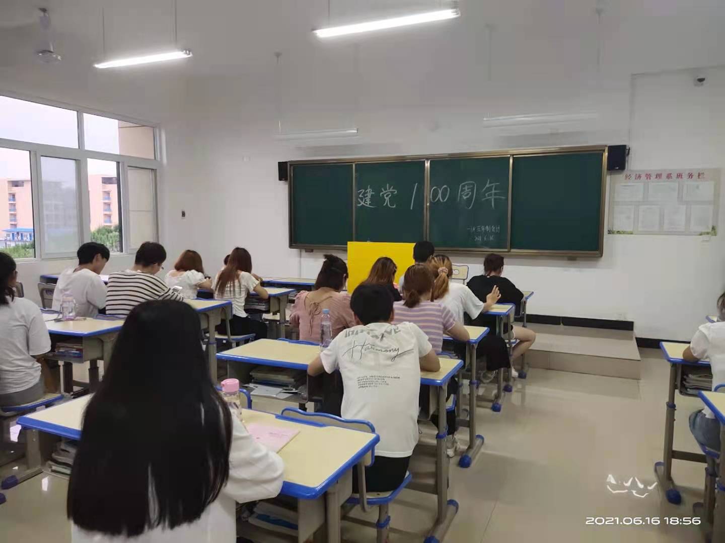 2021年月日晚自习18五年制会计班在经管系教学楼304教室召开“建党100周年”主题班会,18五年制会计班全体同学参加,此次班会由班长闫迪主持。
